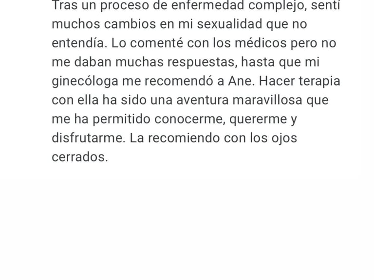 También acompaño procesos individuales cuando hay dificultad para conectar con el cuerpo, el deseo y el placer. O malestares relacionados con la identidad, la orientación o la sexualidad.